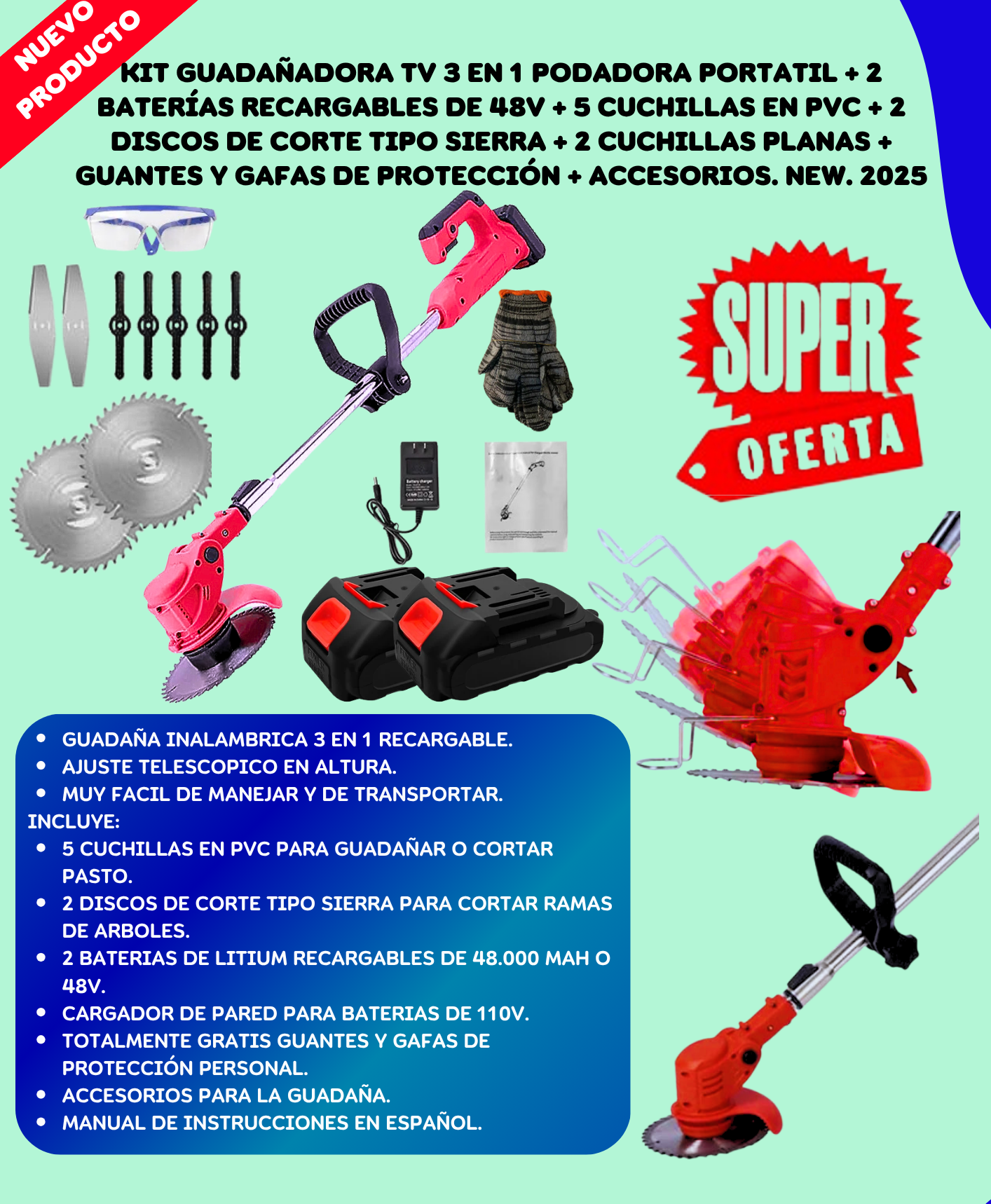 La guadaña eléctrica inalámbrica está diseñada para todo tipo de terreno ecuatoriano: desde jardines en casa hasta fincas grandes en el campo. Corta con precisión pasto, maleza, hierba gruesa y hasta ramas delgadas sin cables, sin gasolina y sin esfuerzo. ¡Es ligera, potente y 100% recargable! 🔋🌾